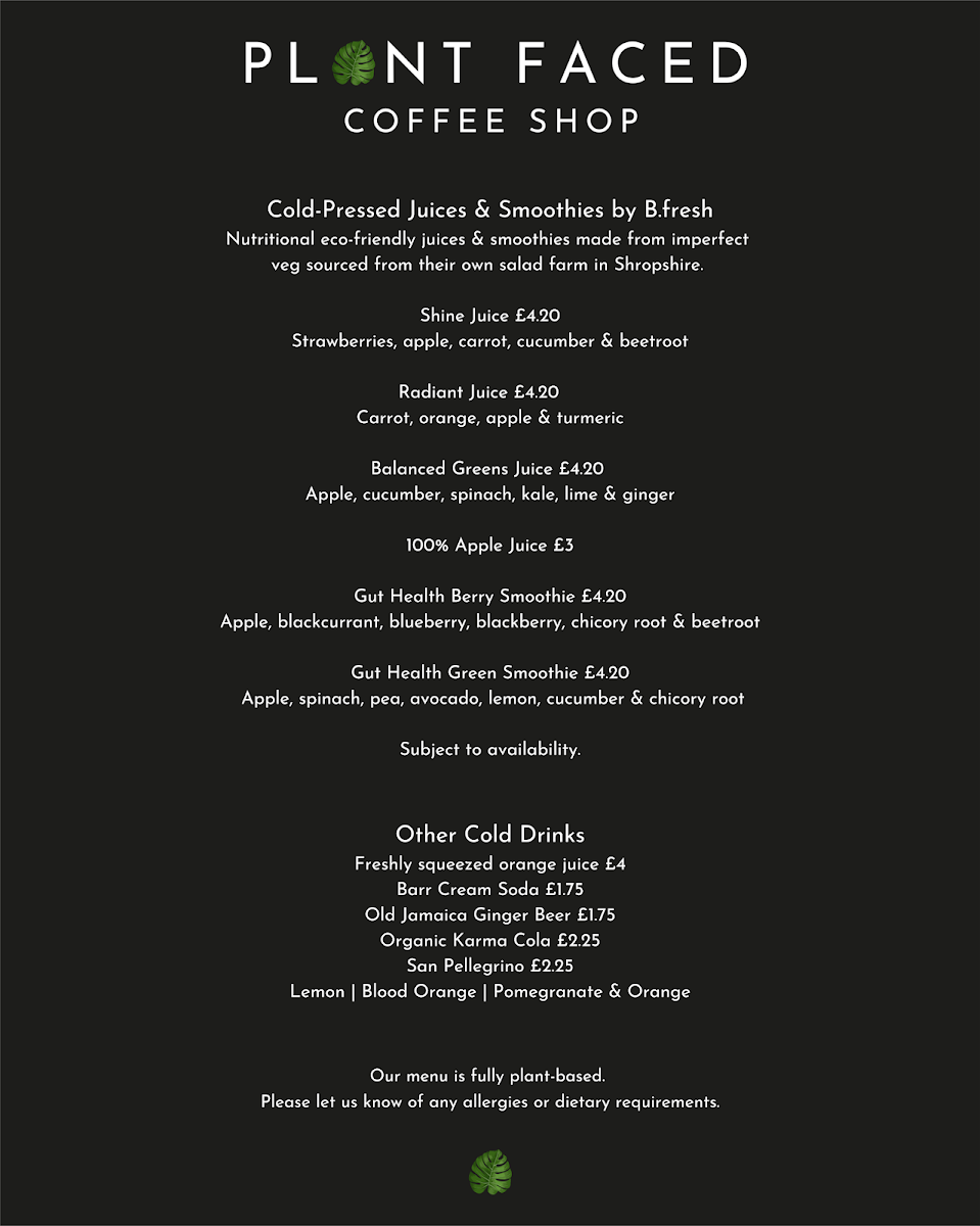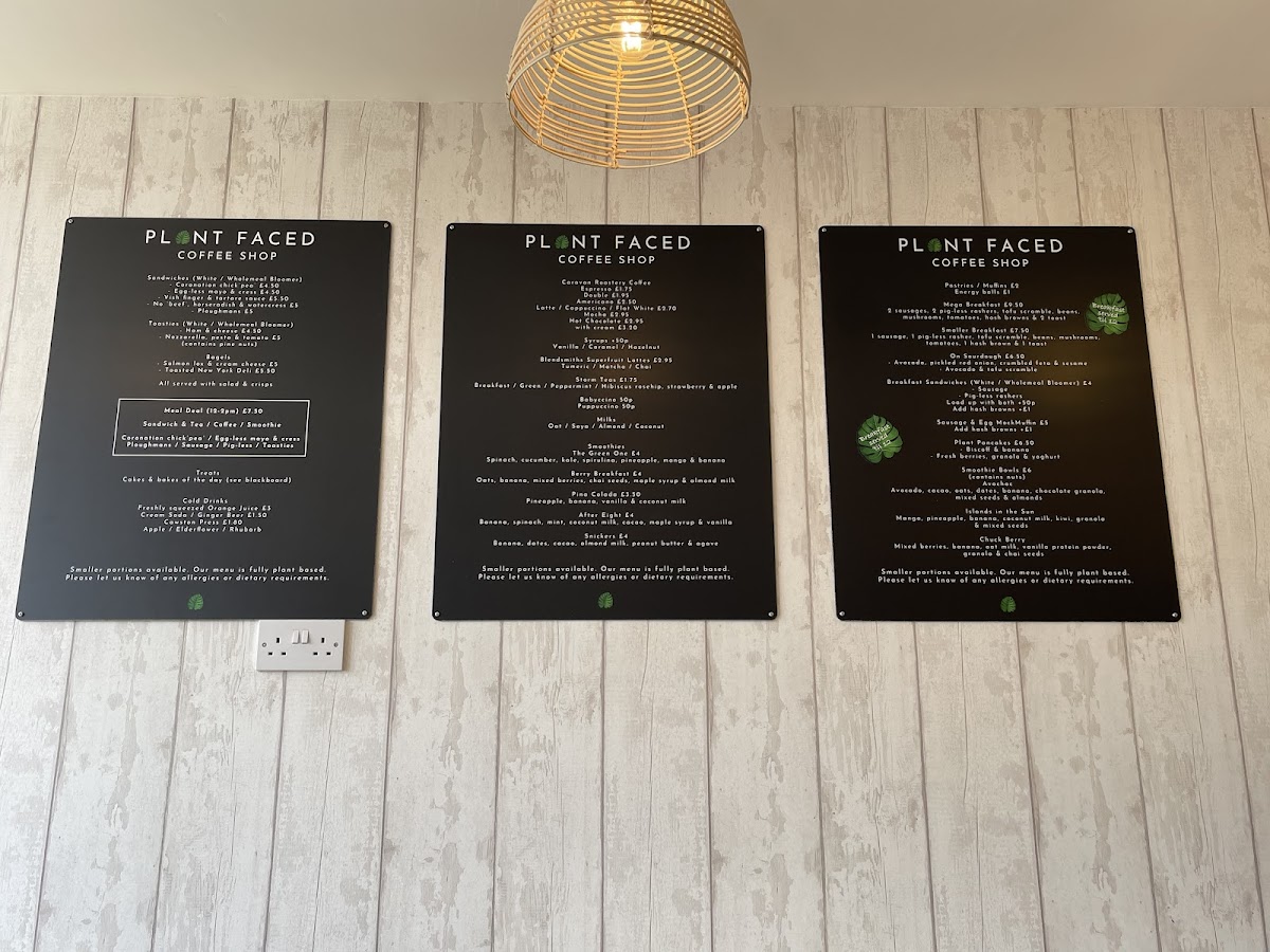 From a reviewer’s perspective, the menu at Plant Faced Coffee Shop delivers a delightful mix of hearty plant‑based comfort and cleverly crafted sandwiches that make it worth visiting. The breakfast offerings, such as the Breakfast and Mega Breakfast served up until mid‑afternoon, showcase generous portions and creative vegan twists, while the Tofu & Avocado dish balances fresh flavours with satisfying texture. Savoury bites like the Sausage & “Egg” Mockmuffin and the Sausage or pig‑less rashers sandwich / seeded roll are standouts for their bold tastes and inventive use of plant‑based ingredients. Alongside these, hash browns and other sides add to both value and variety. Although exact prices weren’t detailed in the provided information, the overall impression is that each dish reflects thoughtful preparation and generous portions, making the menu feel both accessible and exciting for vegans and curious diners alike.